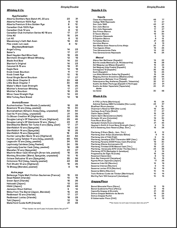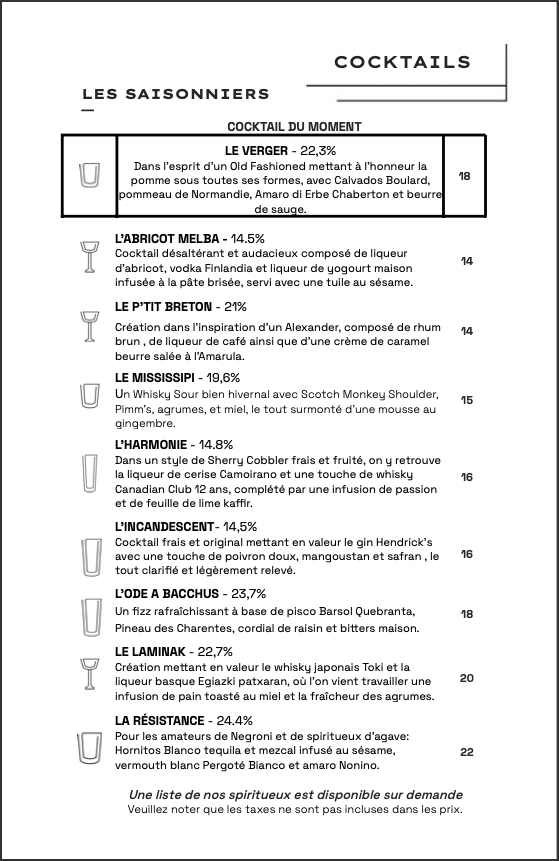 Cocktails signatures & Spiritueux